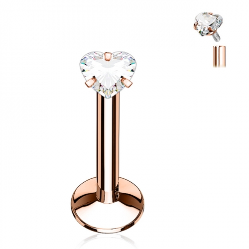 Huulikoru "Heart CZ Prong Set Internally Theared, 3 väriä