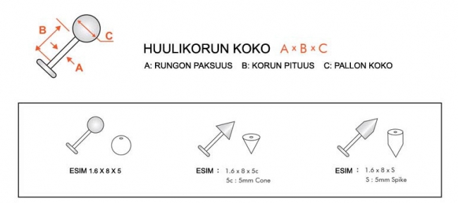 Huulikoru Kivellä 1,2 mm (3 mm)