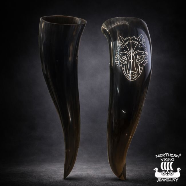 Ilta laskeutuu pitkän talon ylle. Tuli rätisee keskellä salia, ja savun seassa leijuu paahdetun lihan ja hunajan tuoksu. Kilvet on nostettu seinille, miekat nojaavat penkkeihin. Kun torvet soivat ja juoma kiertää, käsiin nousevat juomasarvet – luonnon muovaamat astiat, joista on juotu jo ennen kuin rautaa osattiin takoa. Viikinkien juomasarvet valmistettiin sarvesta, sillä puu halkeili ja metalli oli harvinaista. Sarvi piti juoman viileänä ja kesti matkat merillä ja metsissä. Sillä kohotettiin malja jumalille, vannottiin valoja, juhlistettiin voittoja ja hyvästeltiin kaatuneet. Juomasarvi ei ollut vain astia, vaan osa rituaalia – merkki yhteydestä esivanhempiin ja tarinoihin, jotka kulkivat suusta suuhun.Tämä käsityönä valmistettu juomasarvi jatkaa tuota perinnettä. Jokainen sarvi on yksilö, luonnon itsensä muovaama. Kun nostat sarven huulillesi, pidät kädessäsi jotain ajattomampaa kuin pelkän juoma-astian: palan pohjoista tarinaa.