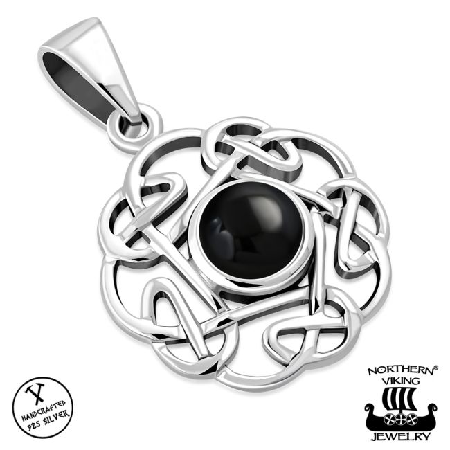 Kelttikorut Hopea Northern Viking Jewelry® Kaulakoru Round Celtic Knot Black Onyx