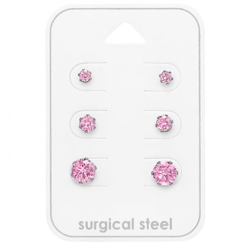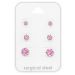 Korvakorut 3 paria Stainless Steel Pink – Koot 3 mm, 4 mm ja 5 mm