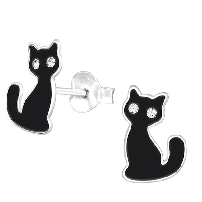 uloiset lasten hopeakorvakorut, joissa musta kissa ja kirkas kivi tuovat leikkisän ja elegantin ilmeen. Hopeasta valmistetut, turvalliset ja allergiaystävälliset korvakorut.