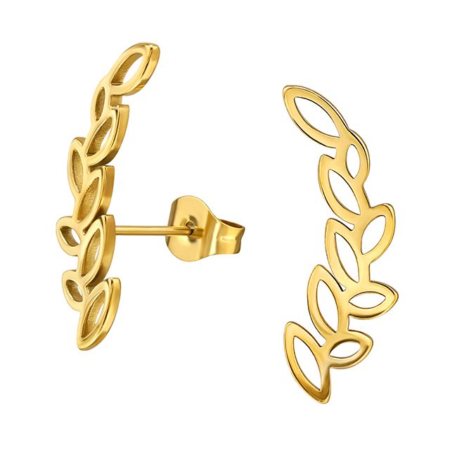 Kullanväriset lehtikorvakorut teräksestä. Kiertyvät kauniisti korvan mukaan. Kevyet, kestävät ja tyylikkäät joka tilanteeseen.