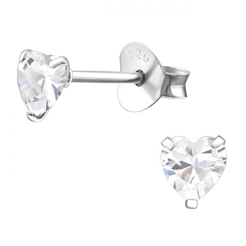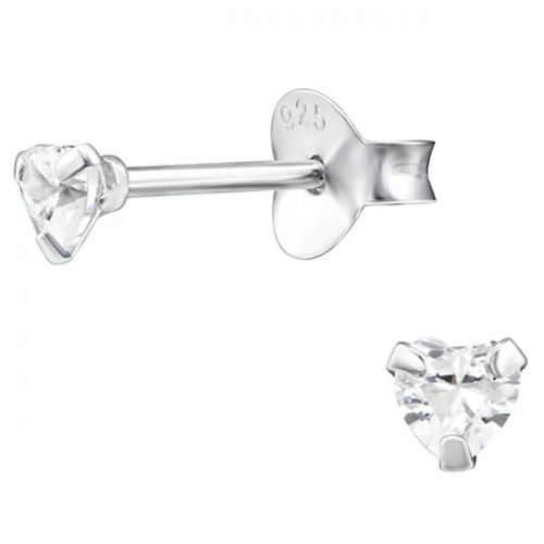 Pienet sydänkorvakorut kirkkailla CZ-kivillä luovat upean ilmeen. Valmistettu 925 sterling-hopeasta, saatavana 3 mm ja 4 mm kokoisina.