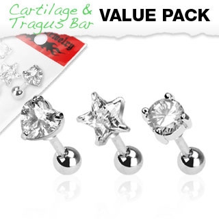 Paketti sisältää 3 kpl Tragus-koruja. Jokaista kuvassa näkyvää korua 1 kpl yhteensä 3 kpl.