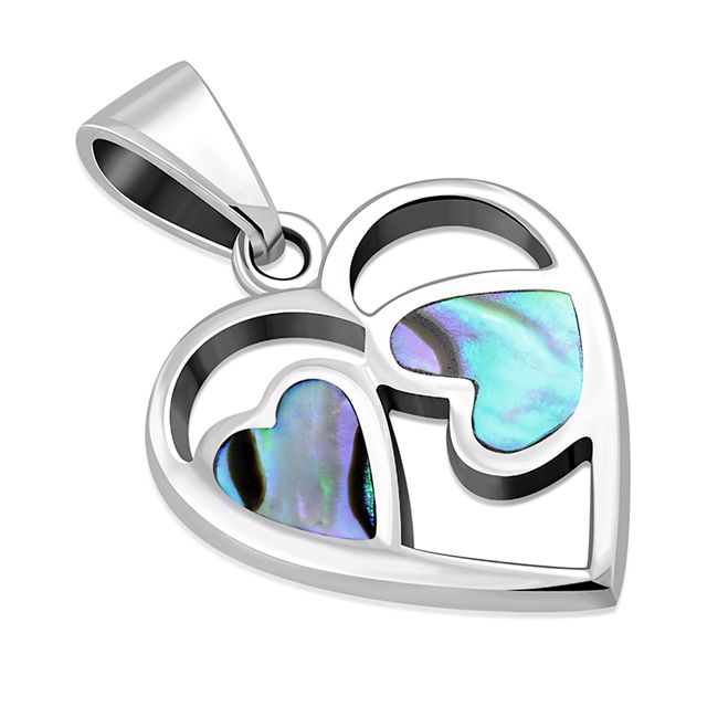 Kaunis sydänkaulakoru hopeaketjulla. Sydämen sisällä kaksi pientä sydäntä, joissa on Abalone Shell -kivet. Täydellinen lahja rakkaalle tai itselle. Tilaa nyt ja saat ilmaisen toimituksen yli 40 € tilauksiin!