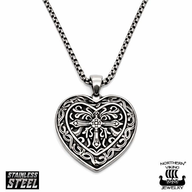 Sydänriipus Ristillä Kelttisolmu Kaulakoru Northern Viking Jewelry®
