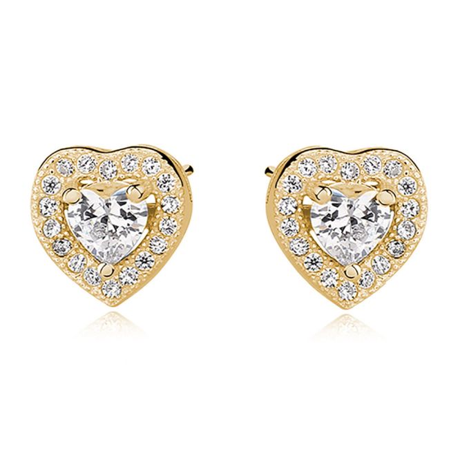 Näissä kauniissa sydänkorvakoruissa yhdistyvät romanttinen muotoilu ja laadukas käsityö. Korvakorut on valmistettu kestävästä 925 sterling-hopeasta, koristeltu säihkyvillä zirconia-kivillä ja viimeistelty 14K keltakullan e-coating -pinnoitteella, joka tuo ylellisen kiillon ja suojaa pintaa.